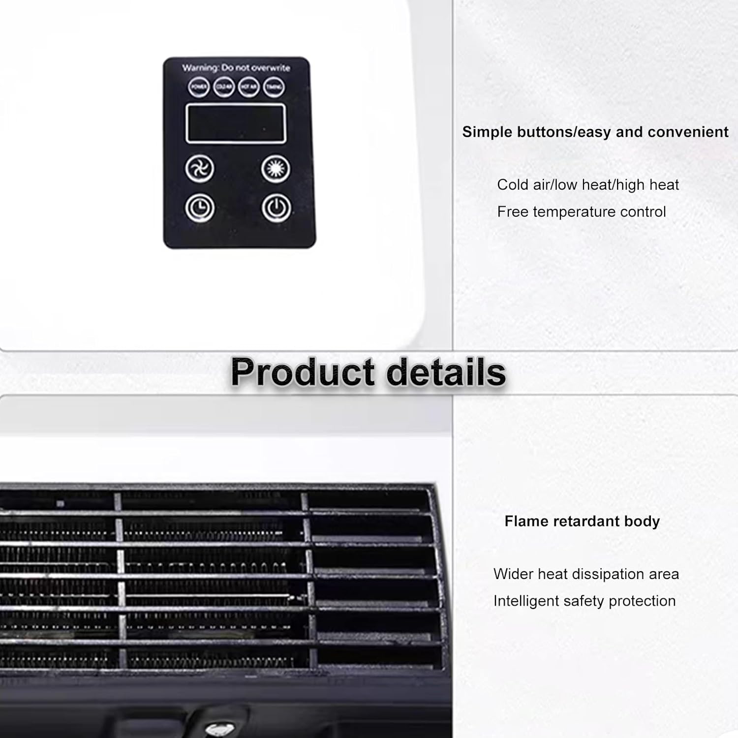 • يعتمد على تقنية السيراميك PTC المتقدمة لتوفير تحكم سريع في درجة الحرارة، مما يمنحك الراحة الفورية سواء في الأيام الحارة أو الباردة.